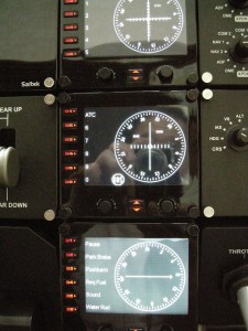 もちろん、FS-X上にある機種の全てが90度まで回転するわけではなく、通常モデルYokeの50度回転角で十分にコントロールできますが、セスナモデルYokeのようにコントローラーの回転ストロークの多い方が、エルロンの動き幅に対してより細かなコントロールが出来るのも事実です。 実際にセスナモデルYokeは、70度付近の回転角まで、画面上セスナのエルロン角度に追従しました。残りの約20度は遊びのクリアランスでしたが、ジェット機ではフライトスポイラーが連動し、Yokeの90度角までフルに追従しました。